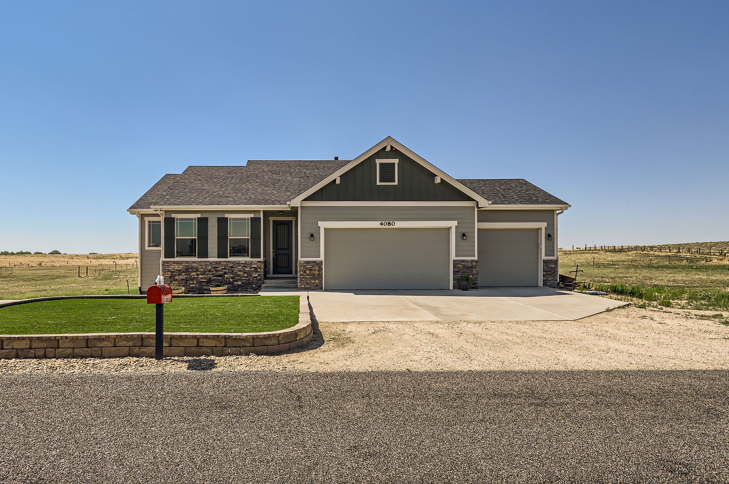 Welcome to your dream home! Nestled on 3 acres of land, this stunning ranch-style residence, built in 2015, offers the perfect blend of modern comfort and serene country living. Ideally located right between Highway 85 and I-76, this home provides a quick drive to the airport and easy access to downtown. It allows RVs, 5th Wheels, and campers. Max of 4 outside vehicles. It's also close to the newly redone recreation center in Brighton. The land features two separate pastures, a loafing shed, and a storage barn you can use for storage. Perfect for your horses or livestock! Open grasslands behind the home add to the charm, offering an unparalleled stargazing experience. With the neighborhood being so spread out, quiet, and dark, the night sky comes alive, showcasing a breathtaking array of stars that create a magical, serene atmosphere. Inside, the open floor plan creates a spacious and inviting atmosphere, featuring a large living room with expansive windows that frame views of the backyard. The kitchen is a chef's delight with newer appliances, counter seating, ample pantry storage, and a convenient dining area. Step outside to the deck from the dining space, ideal for enjoying morning coffee or sunsets. The main floor primary suite provides a private retreat with easy access to all the essentials - a walk-in closet, double vanity sinks, and a glass shower. You'll love the luxurious vinyl plank flooring that extends throughout the main level. The finished basement offers even more possibilities, with two large rec room areas ready for your personal touch. There is also a huge storage room and egress windows ready for an additional bedroom if needed. An attached 3-car garage ensures plenty of space for vehicles and extra storage. This home is a true gem, offering comfort, style, and ample space both indoors and out. Don't miss the opportunity to make this exceptional property your own!